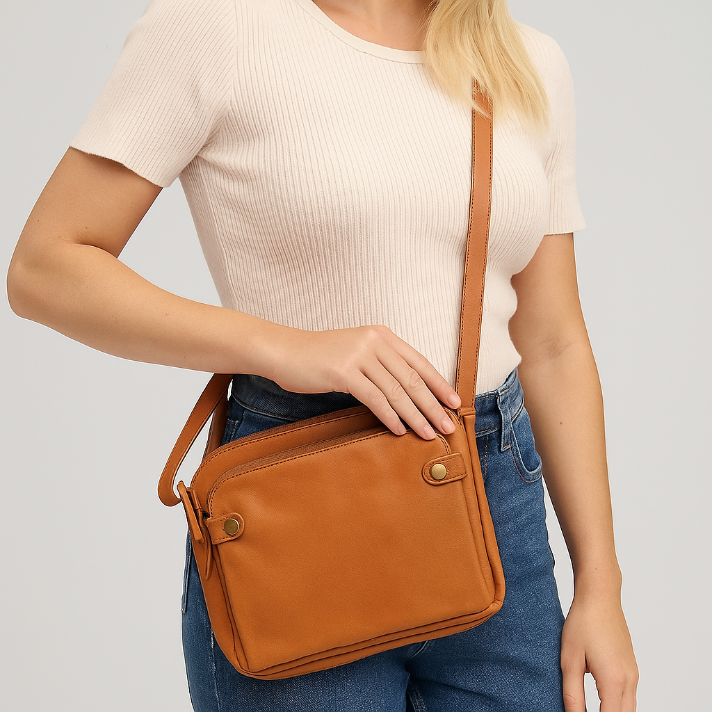Akinna Trendy håndtaske i imiteret læder kombinerer et tidløst look med praktisk funktionalitet. Den glatte overflade giver tasken et elegant udtryk, mens de fine metaltryk og lynlåslommer tilføjer et moderne og velorganiseret design.