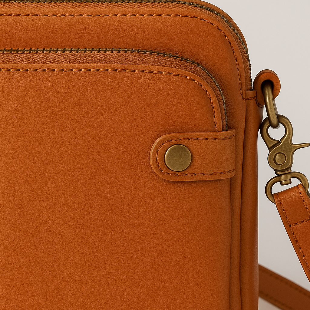 - Design: Klassisk og kompakt form med dekorative metalknapper