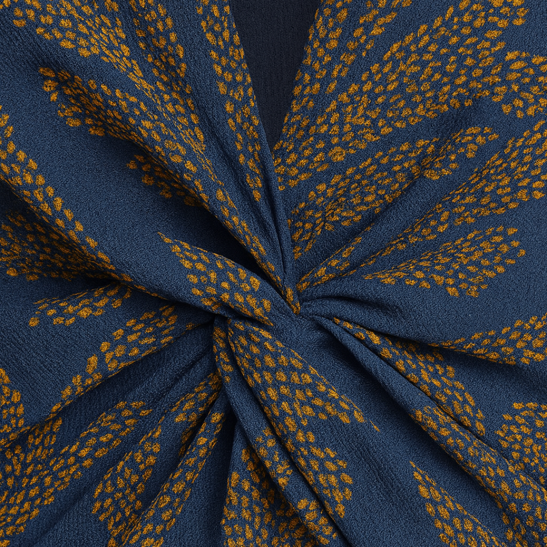 - Detaljer: Gyldent blomsterprint og v-udskæring
