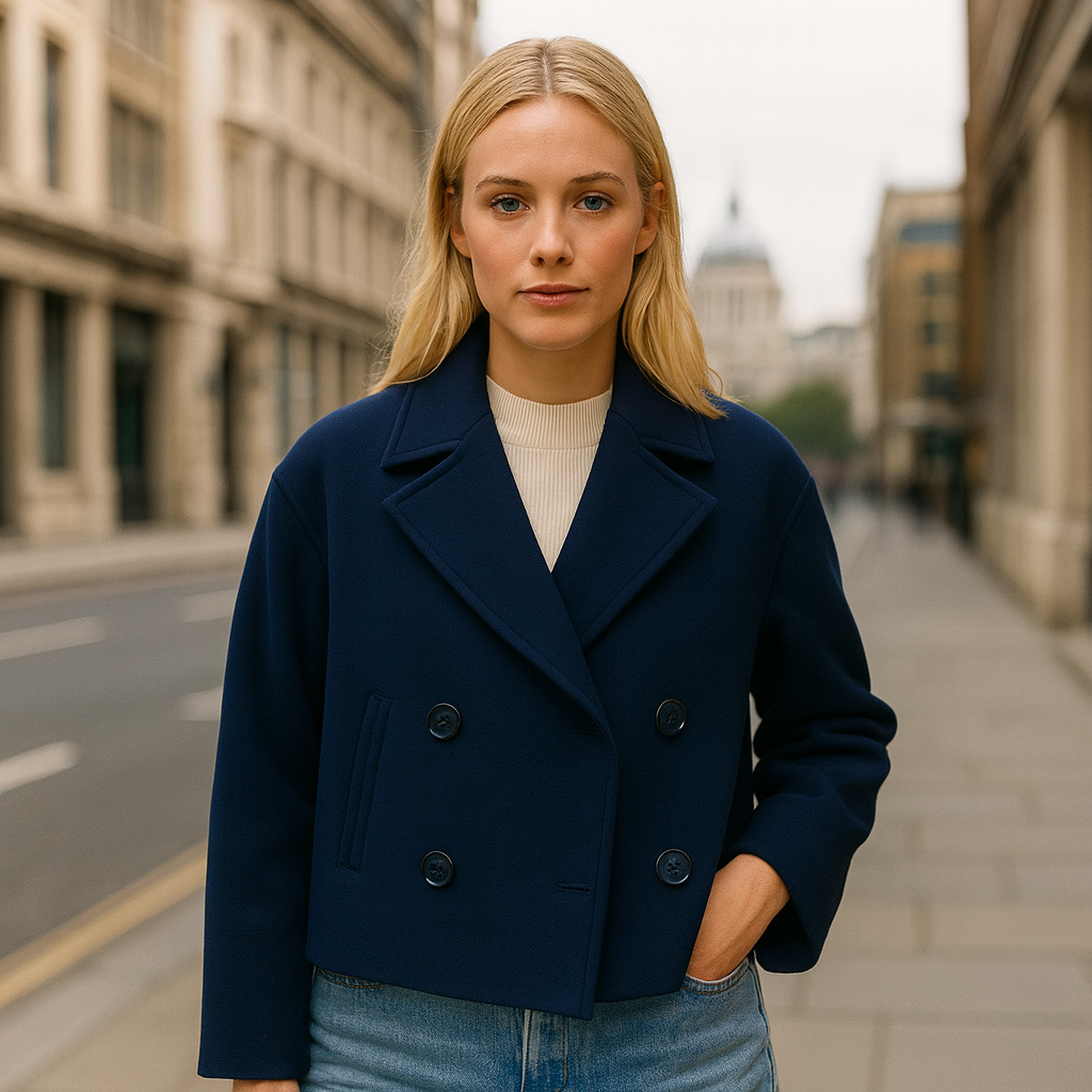 Amalie Uldjakke kombinerer klassisk skrædderi med et moderne, minimalistisk udtryk. Den korte dobbeltradede pasform giver et sofistikeret look, mens det bløde uldmateriale sikrer varme og komfort. Perfekt til overgangsperioder, hvor stil og funktionalitet går hånd i hånd.
