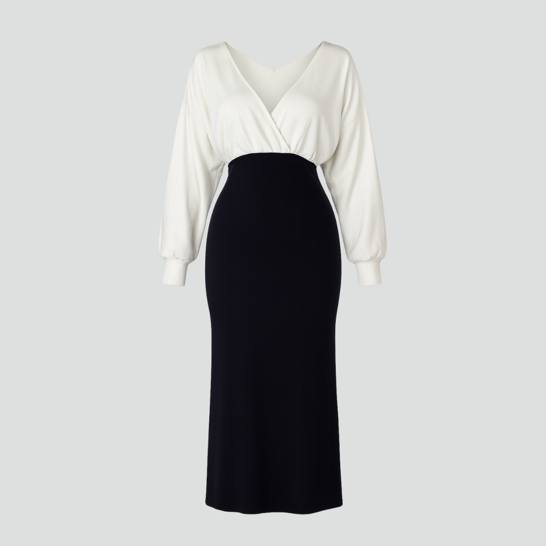 Oplev sofistikeret kontrast og tidløs elegance med Amara Maxi Kjole. Den kombinerer en blød, draperet overdel i hvid med en figursyet sort nederdel, der fremhæver taljen på smukkeste vis. Den lange silhuet og det enkle design gør kjolen ideel til både formelle begivenheder og stilfulde aftenarrangementer. Et look, der forener moderne minimalisme med klassisk femininitet.