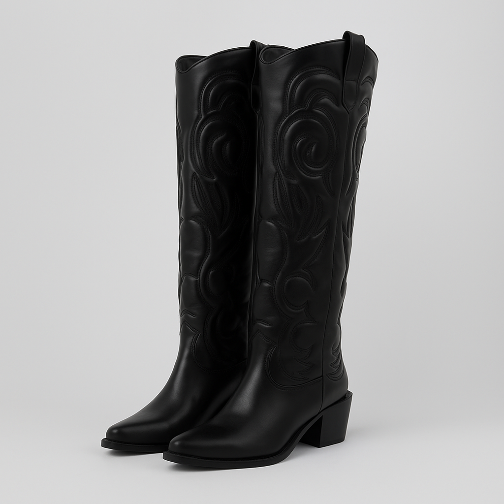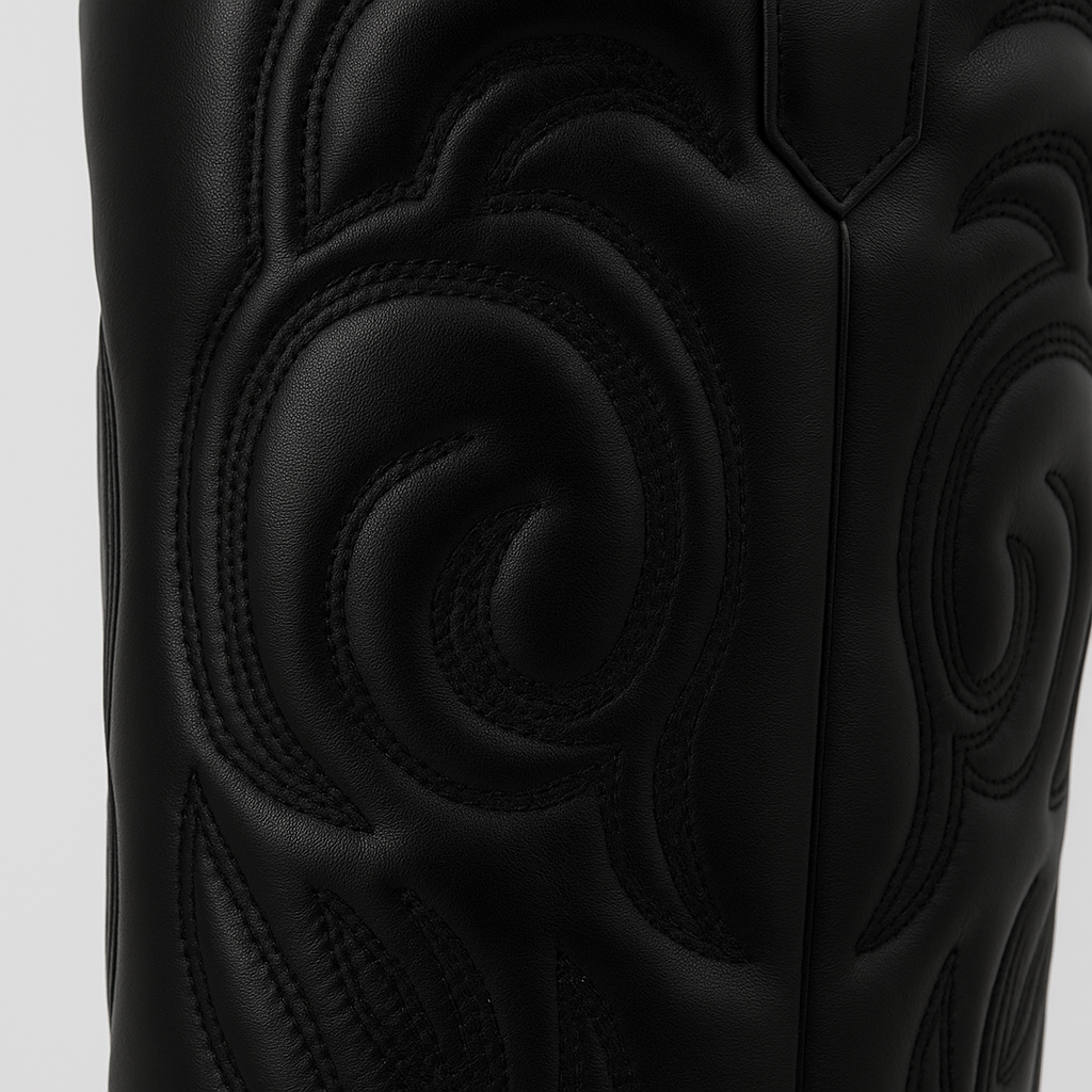 - Design: Cowgirl-støvler med detaljerede syninger og mønster