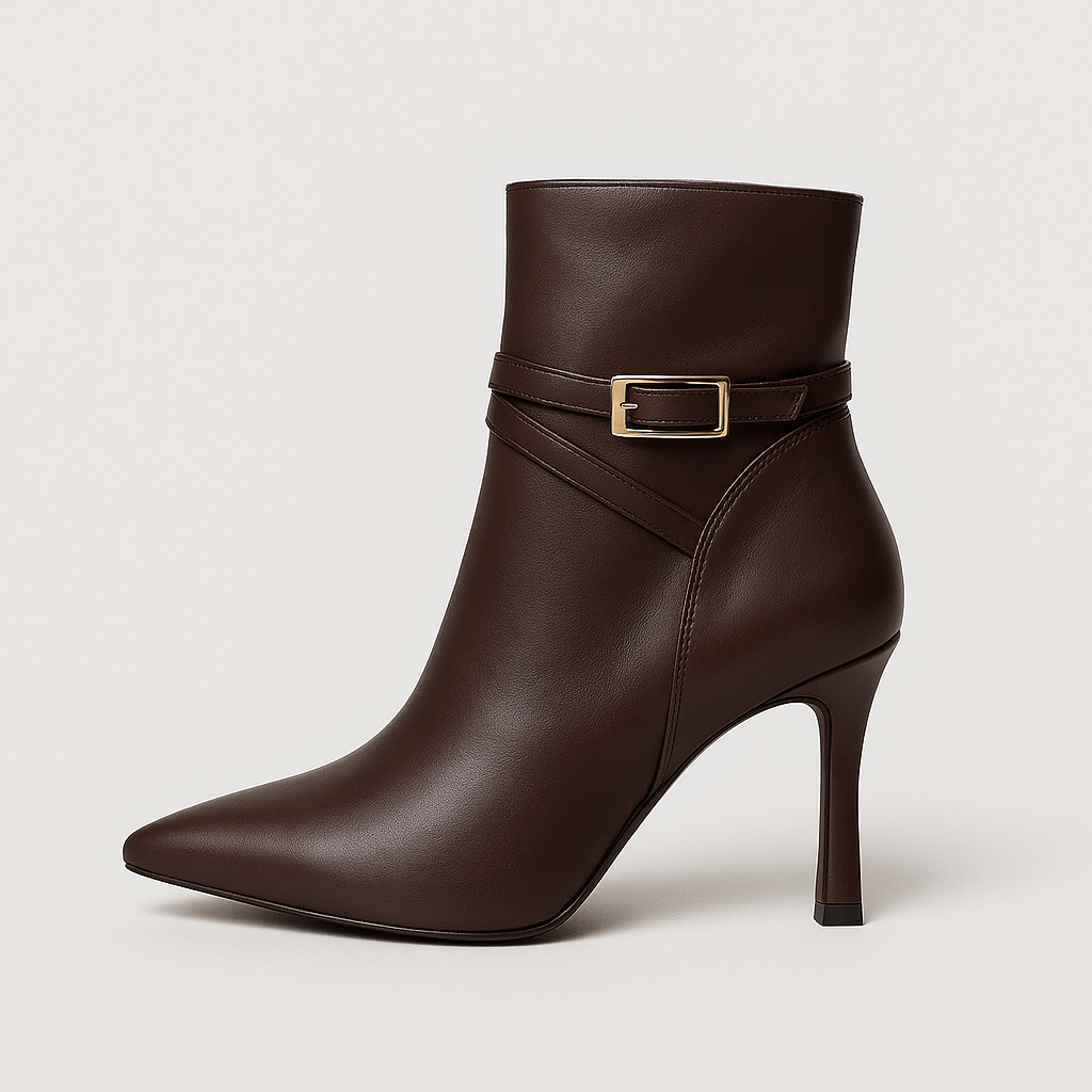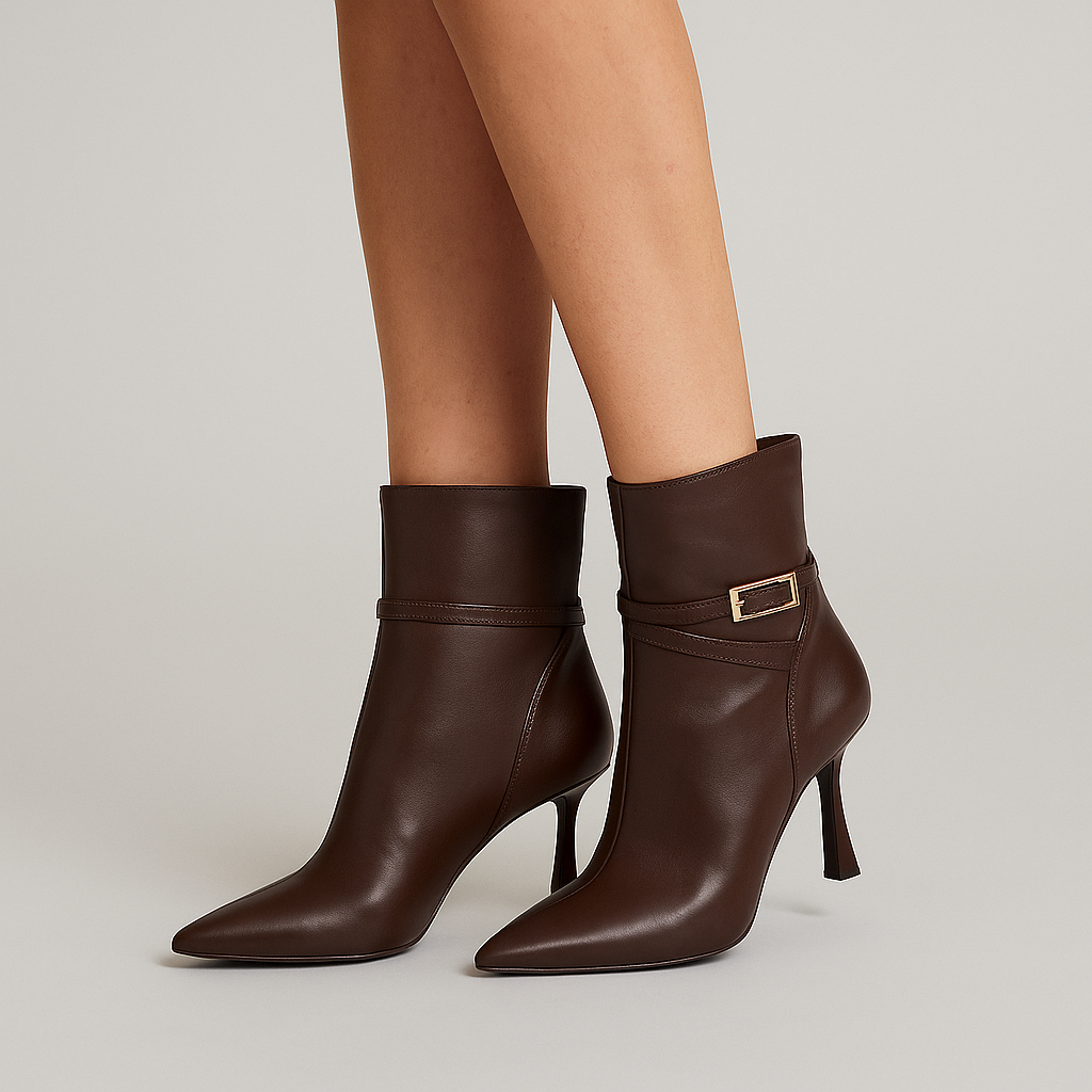 Annemarie Høje hæle støvler giver et elegant og sofistikeret udtryk med deres tidløse design og fine detaljer. De har en spids tå og en slank hæl, der forlænger benene og skaber en stilfuld silhuet. Den gyldne spænde-detalje tilføjer et eksklusivt finish, perfekt til både kontor og aftenbrug.