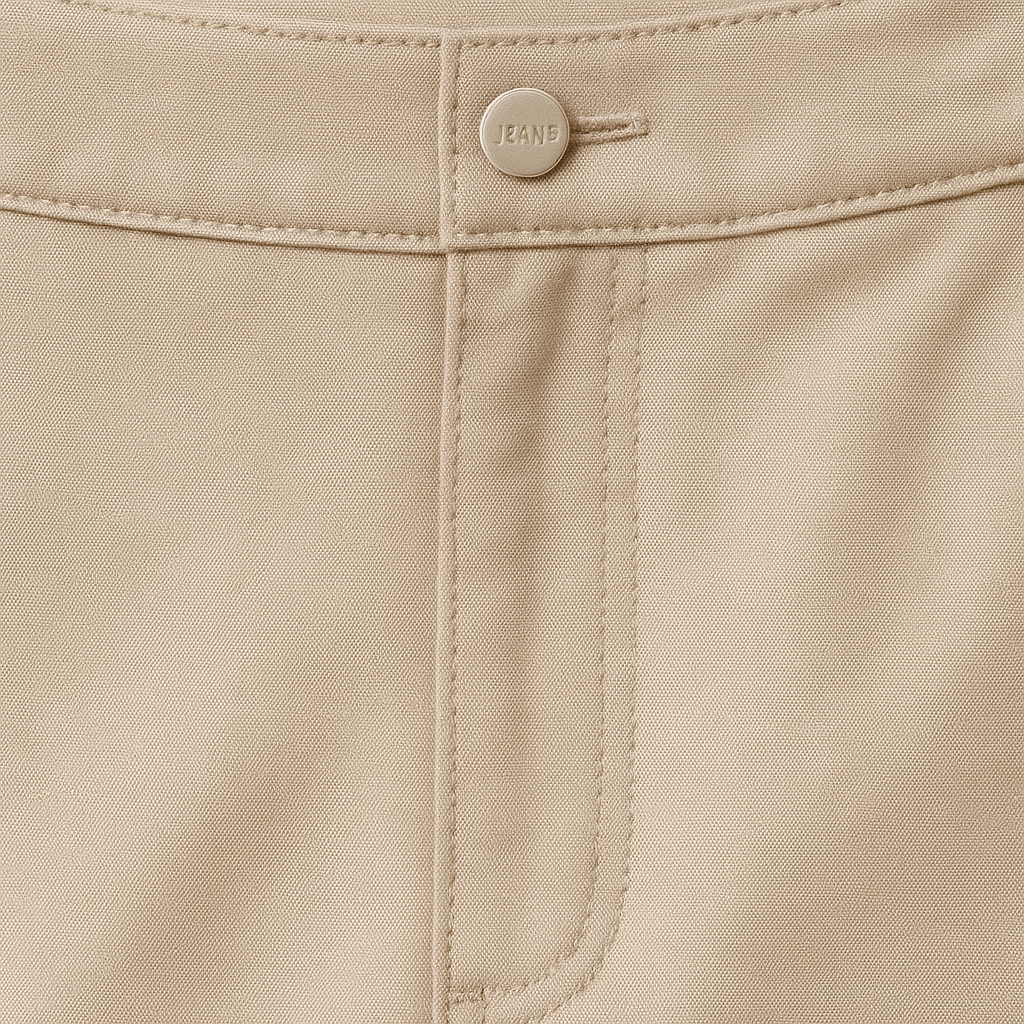 - Design: Smart-casual med smalle ben og elastiske ankler