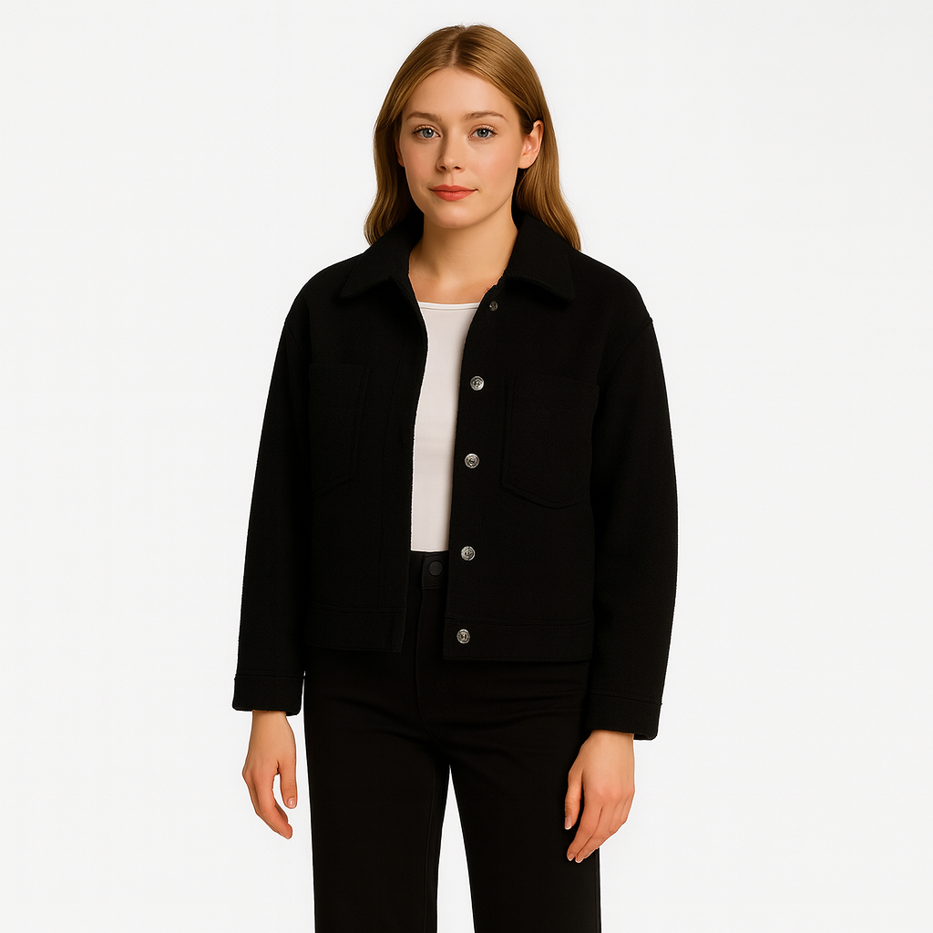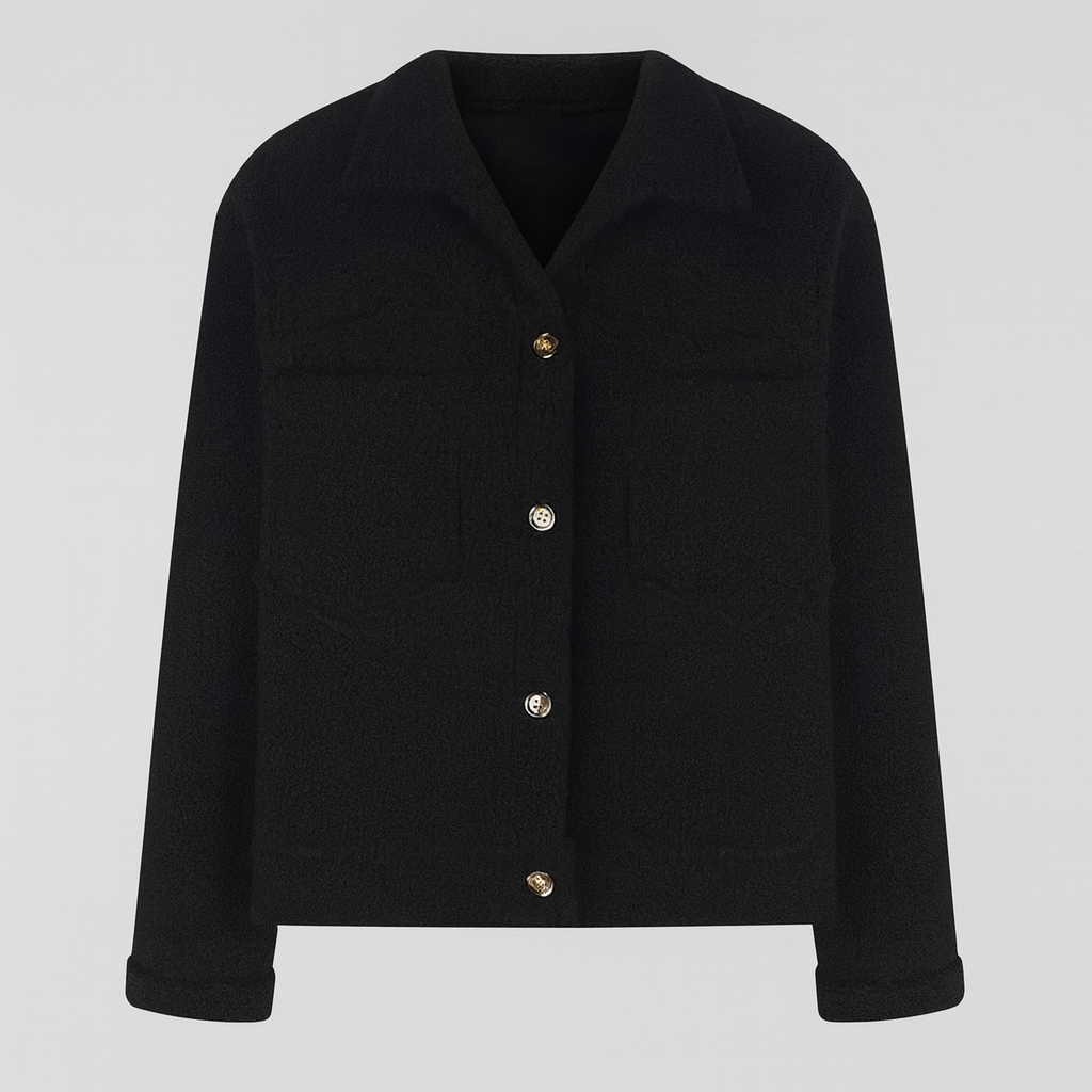 Clara Teddyjakke er den perfekte kombination af hygge og stil. Med sin bløde, plysset overflade og afslappede pasform giver den en moderne, afslappet silhuet, der passer til både hverdag og weekend. De enkle knapper og store frontlommer fuldender det minimalistiske look.