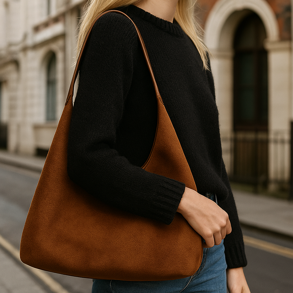 Clarissa tasken i imiteret læder udstråler moderne enkelhed med et trendy twist. Den trekantede silhuet og bløde overflade giver tasken et minimalistisk, men iøjnefaldende look, der passer perfekt til både hverdag og aften. Med sit lette design og rummelige indre er den ideel til at bære dine nødvendigheder med stil og lethed.