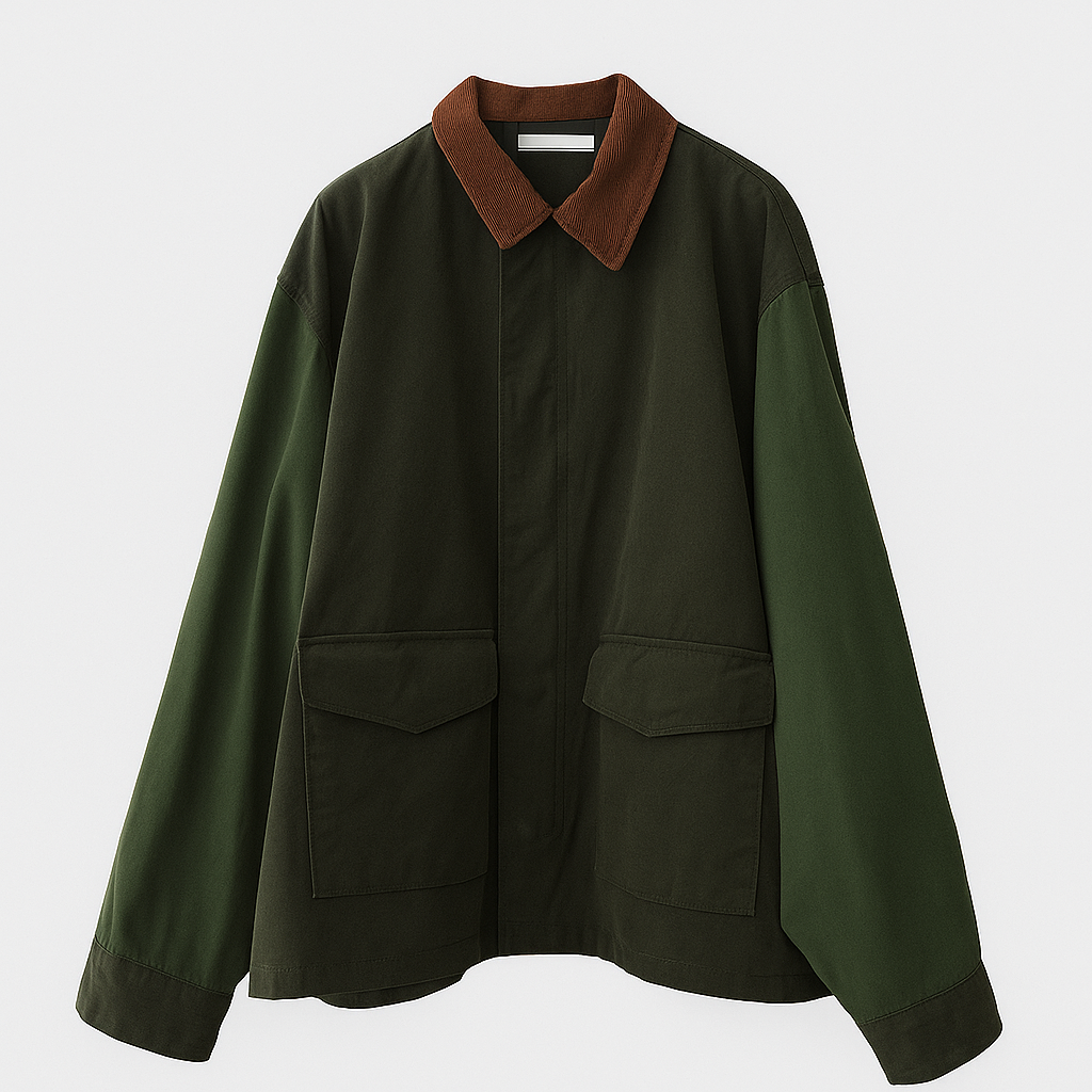 - Design: Overdimensioneret pasform med store frontlommer