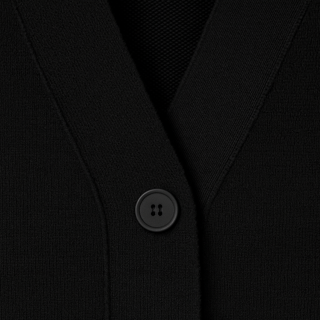 - Design: Lang cardigan med V-hals og knaplukning foran