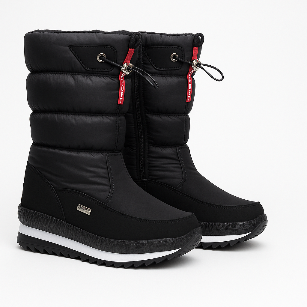 Freja Vinterstøvler Dame er designet til at holde dine fødder varme og tørre hele vinteren. De vatterede materialer, den isolerede foring og den skridsikre sål giver både komfort og stabilitet på kolde dage. Med lynlås foran og justerbare snører får du en perfekt pasform, samtidig med at det sporty design gør dem ideelle til både by og natur.