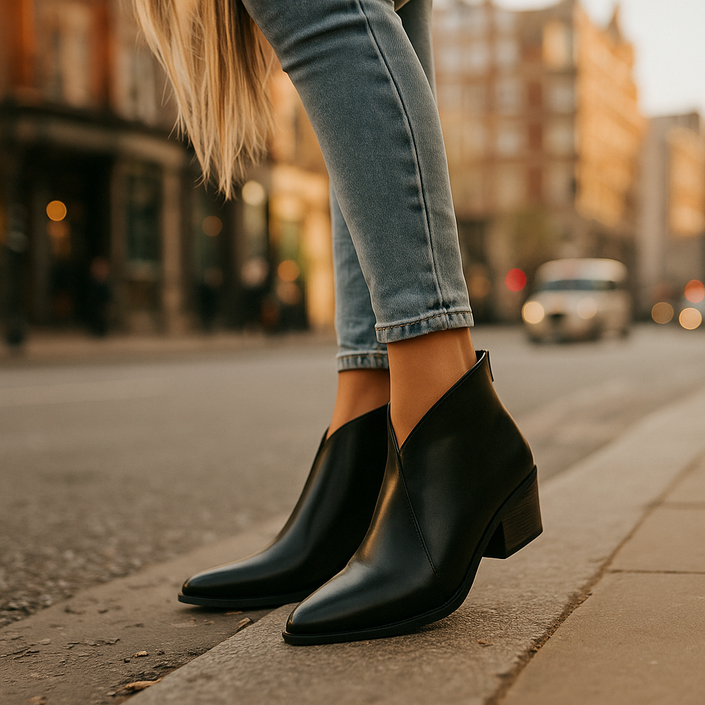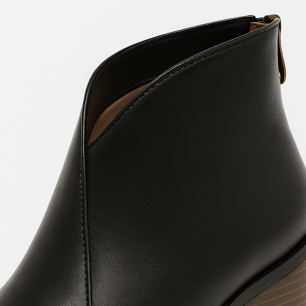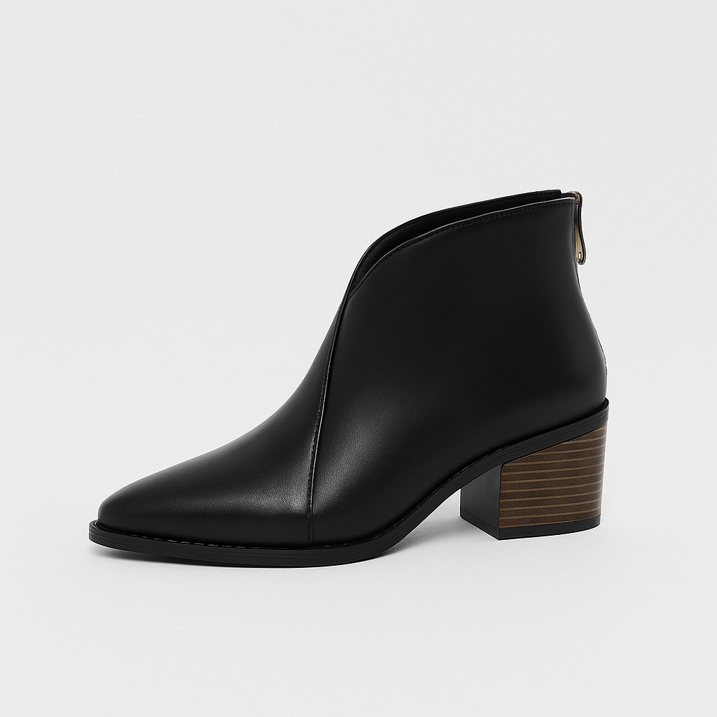 Germina ankelstøvlerne kombinerer et moderne, skarpt udtryk med en slank og stilfuld pasform. Den spidse front og de rene linjer giver et sofistikeret look, mens den lave blokhæl gør dem nemme at bruge både til hverdag og aftener ude. En støvle, der løfter hele dit outfit med minimal indsats.