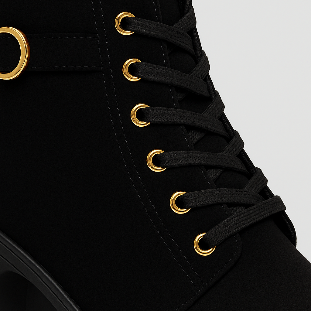 - Design: Snørebånd med metaløjer og dekorativ spænde