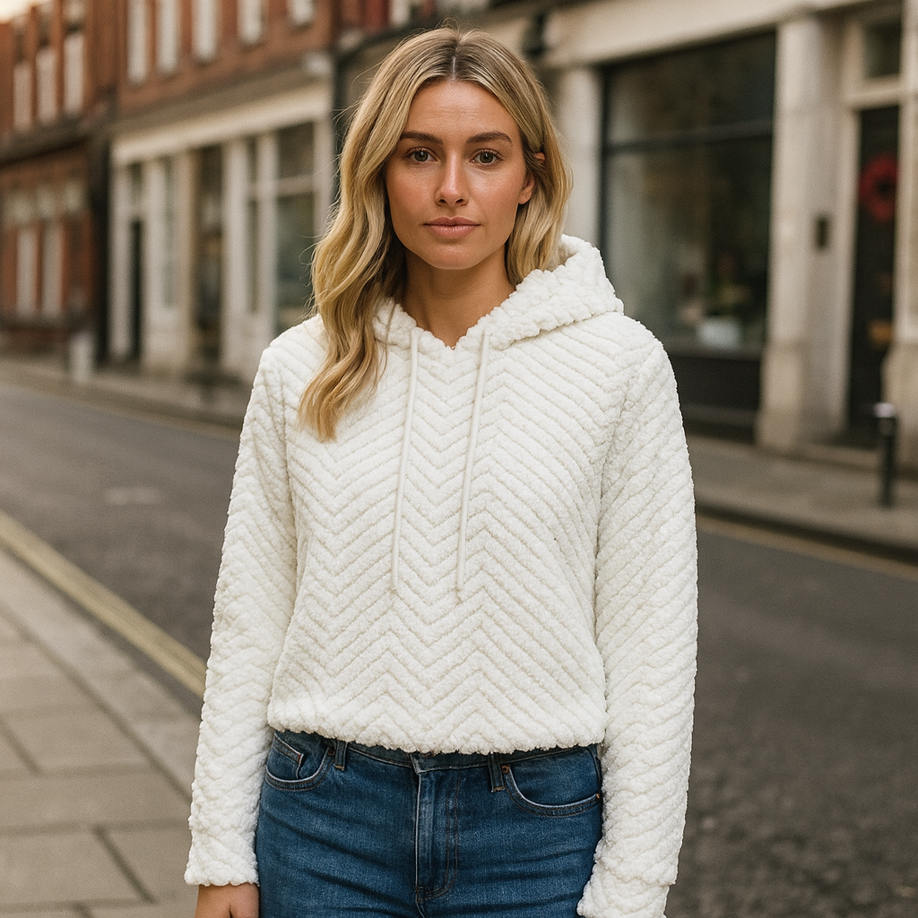 Hættetrøje i fleece fra Lea er den perfekte kombination af afslappet stil og ultimativ komfort. Den bløde, teksturerede fleece føles varm og luksuriøs mod huden, mens det minimalistiske design med hætte og snører gør den ideel til både hjemmehygge og hverdagsbrug. Et must-have til kolde dage, hvor du vil føle dig både afslappet og velklædt.