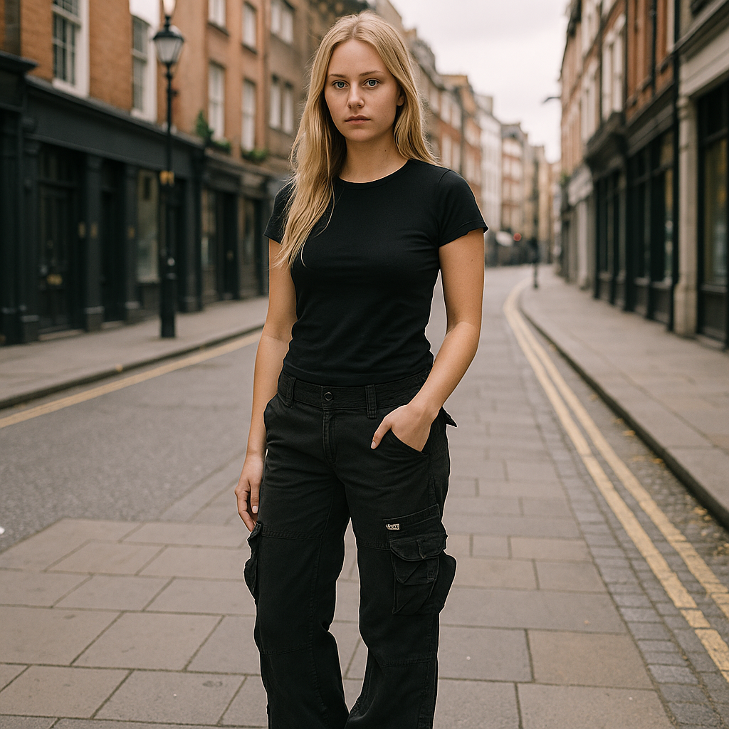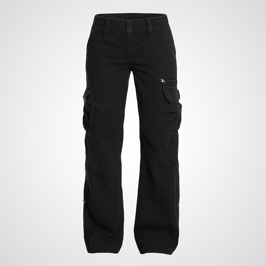 Irah Vintage cargobukser kombinerer funktionalitet med et afslappet streetwear-look. De sorte cargobukser har en løs pasform med mange lommer, der giver et praktisk og moderne udtryk. Det slidstærke materiale og de justerbare detaljer gør dem ideelle til både daglig brug og afslappede aktiviteter.