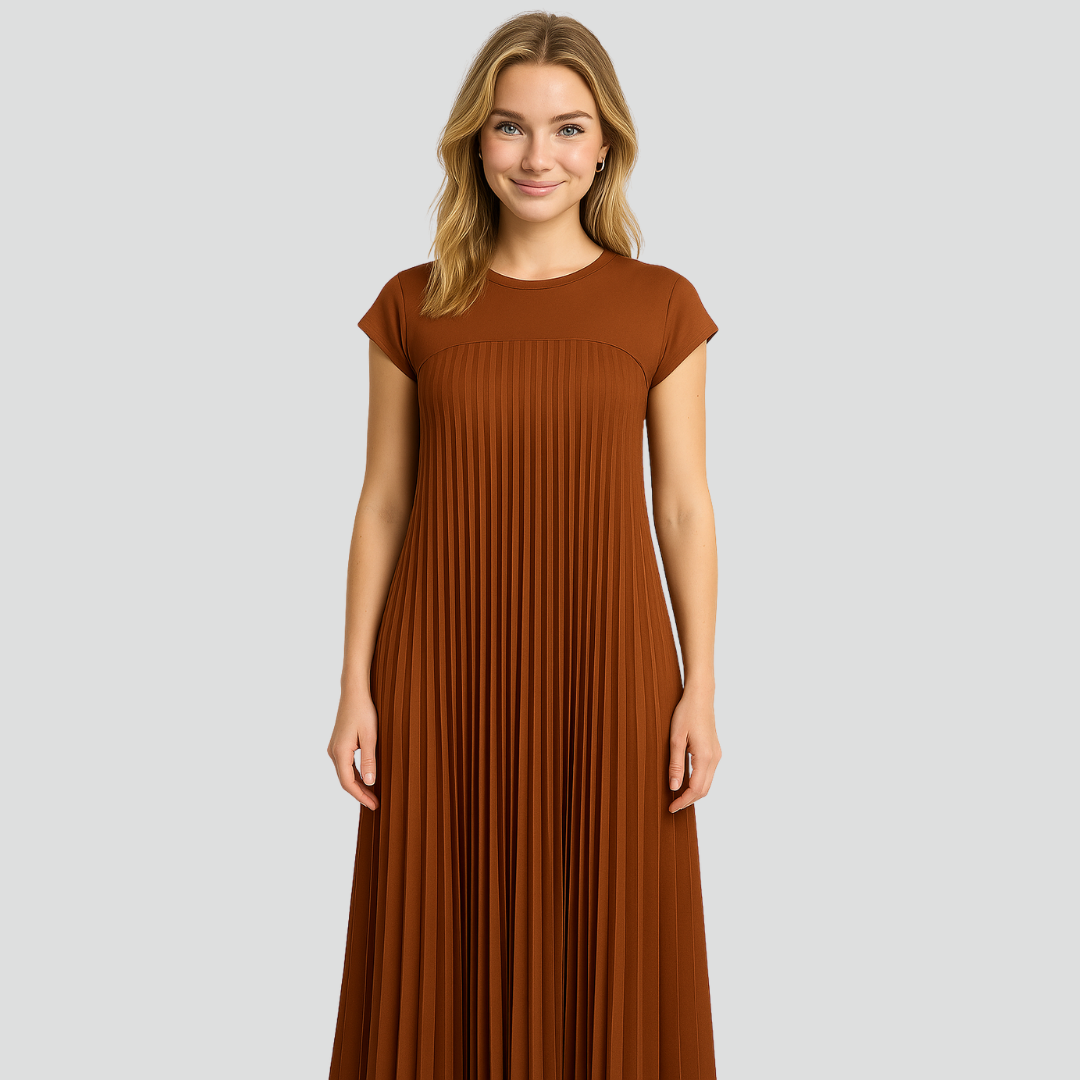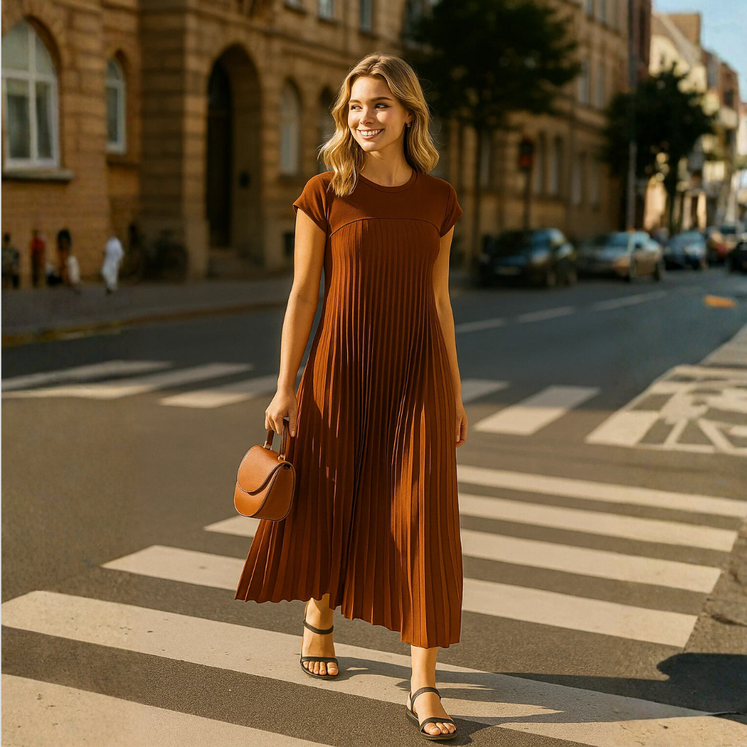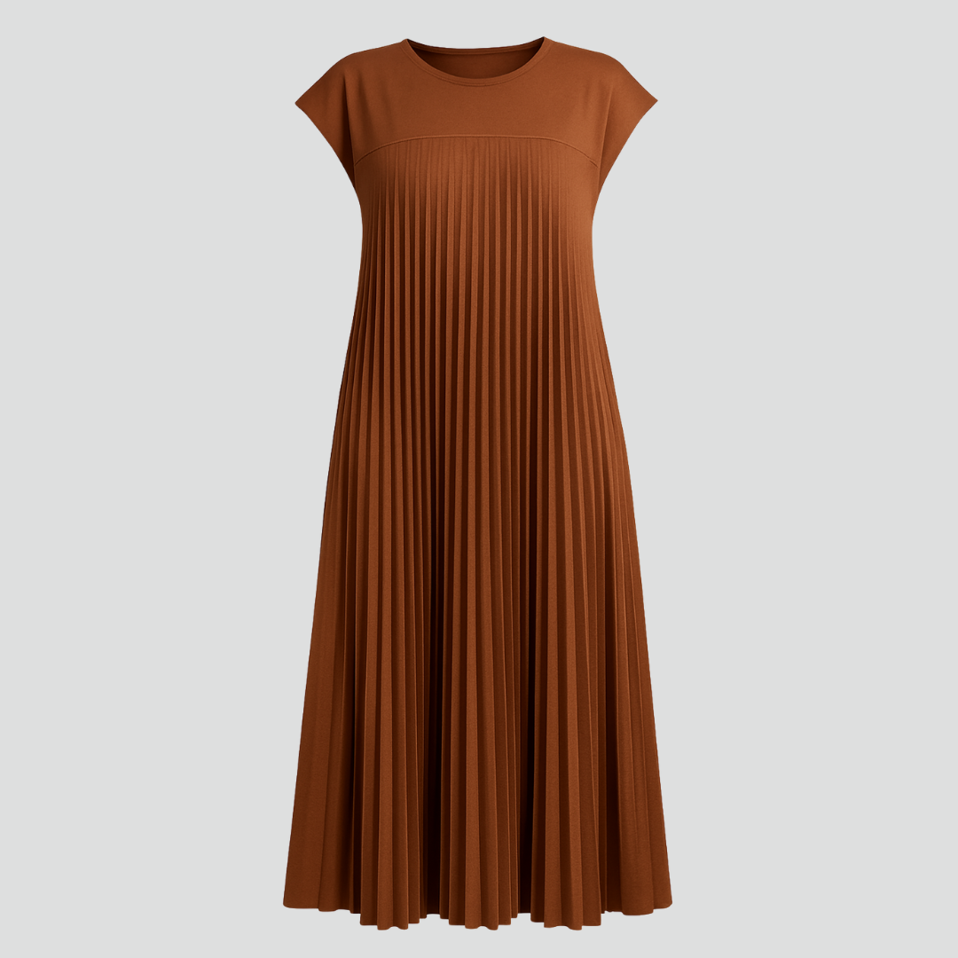Oplev ubesværet elegance med Isla Plisseret Maxi Kjolen. Denne smukke kjole er fremstillet i et let og luftigt materiale, der bevæger sig elegant med hvert skridt. De fine plisseringer og den løse pasform giver et tidløst og sofistikeret udtryk, der forener komfort og stil. Perfekt til sommerfester, ferier eller afslappede, stilfulde dage.