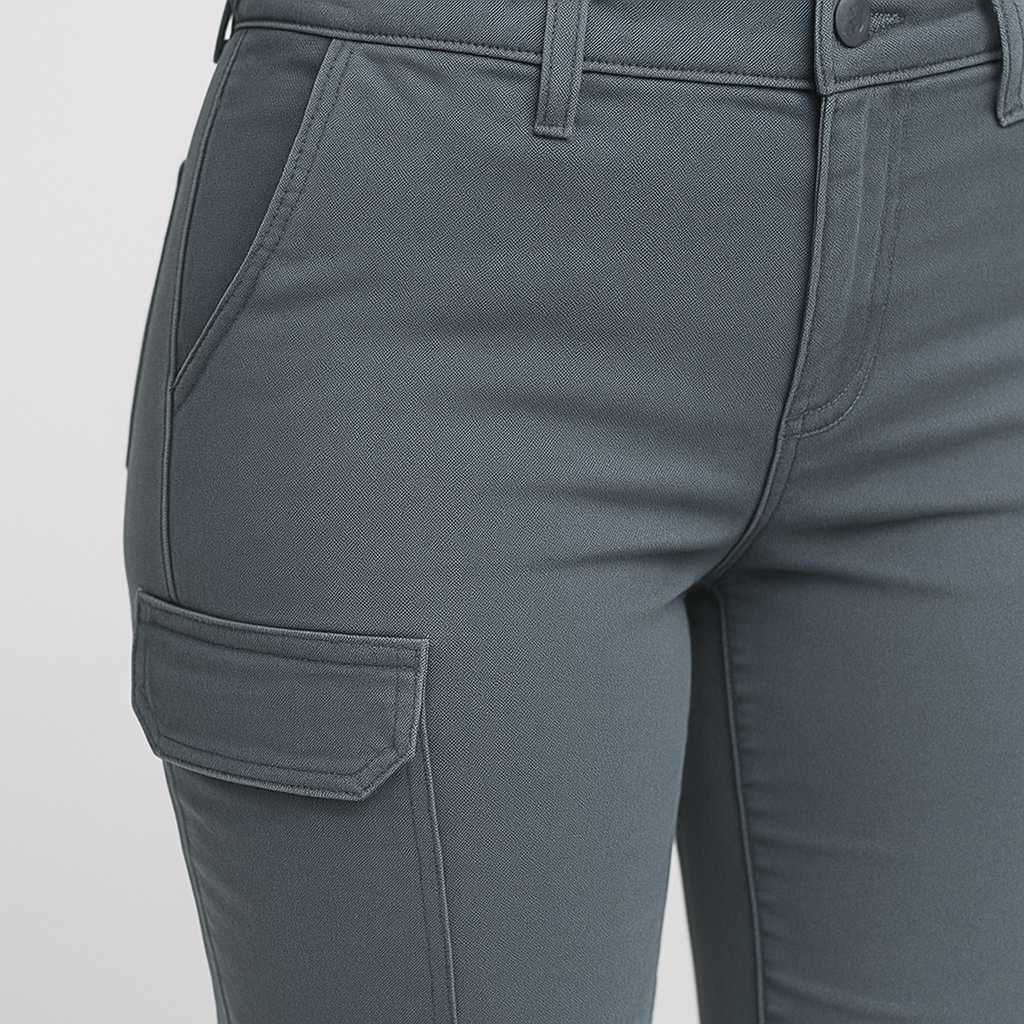 - Stil: Trendy cargoinspireret design med feminine linjer