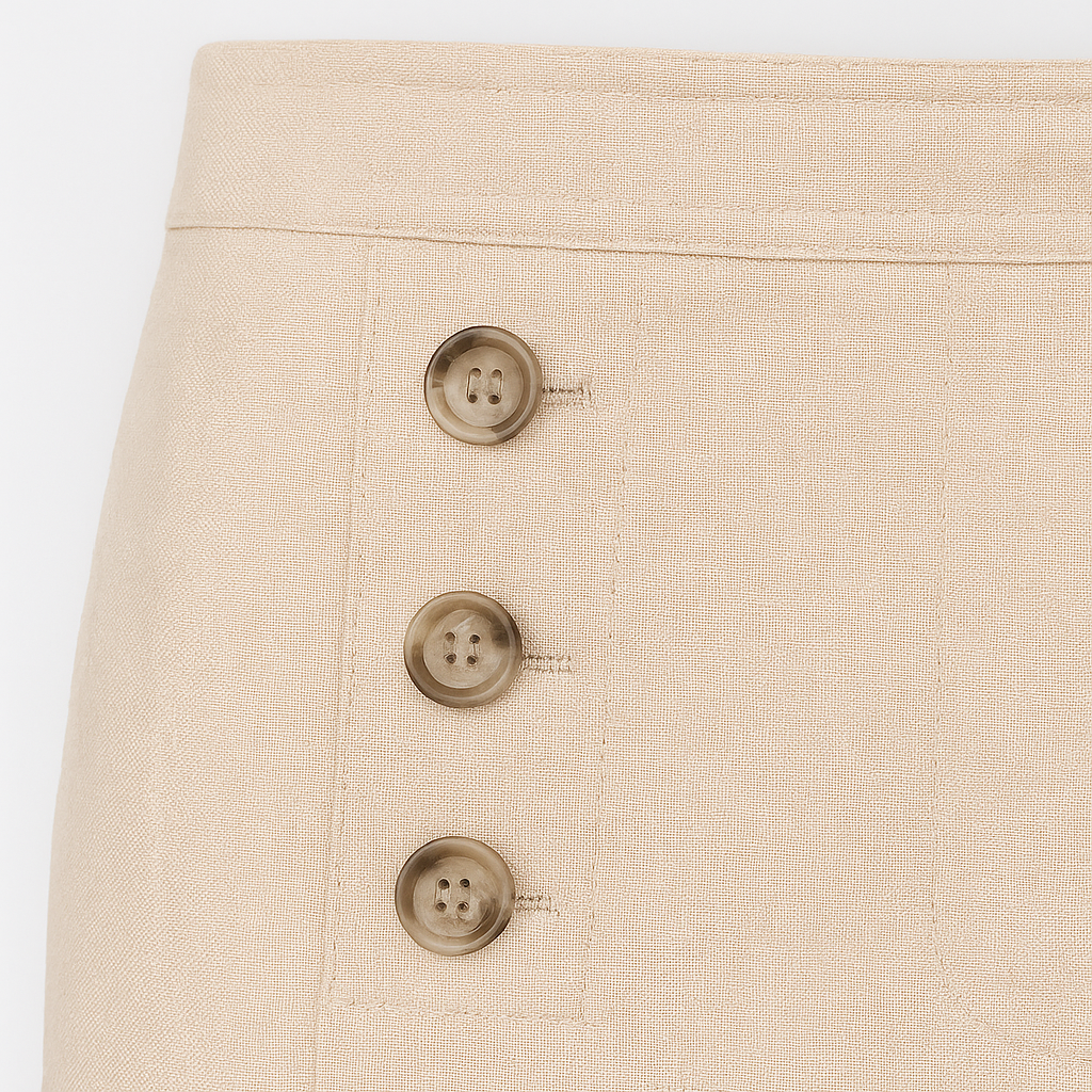 - Design: Høj talje med dobbeltrækker knapper