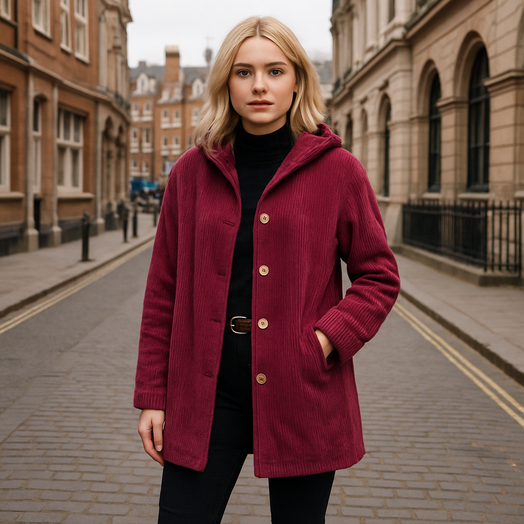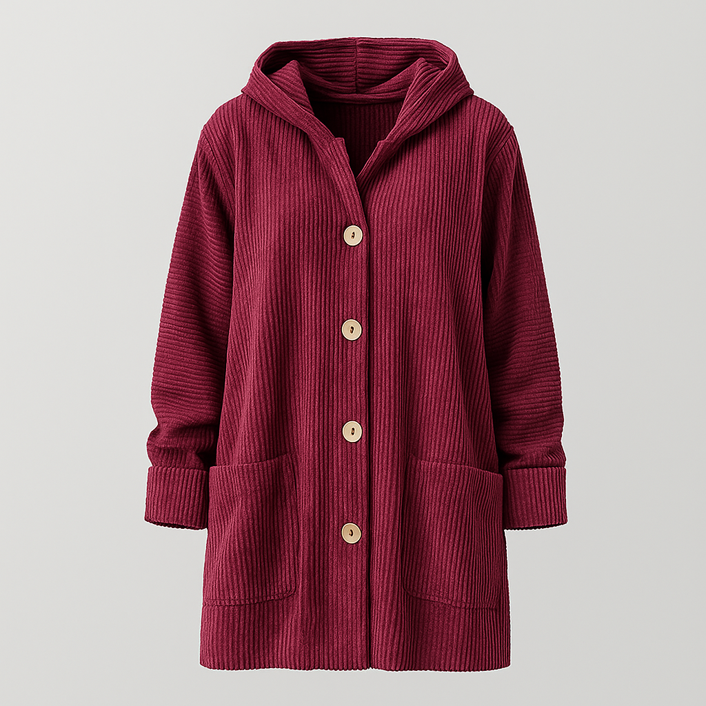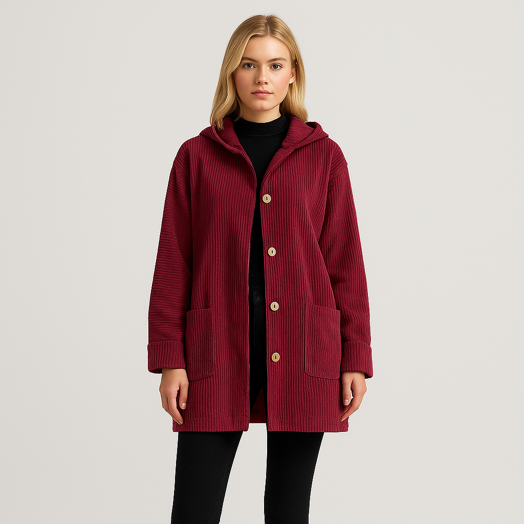 Leriz Casual hættetrøje giver et afslappet, men elegant udtryk med sin bløde fløjlsoverflade og løstsiddende pasform. Den varme bordeauxfarve og de store knapper skaber et moderne look, der passer perfekt til både hverdag og afslappede weekender. Ideel til lag-på-lag outfits på kølige dage.
