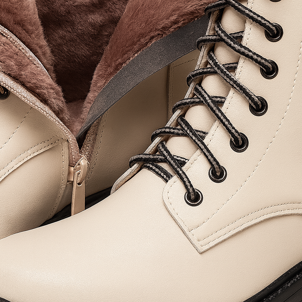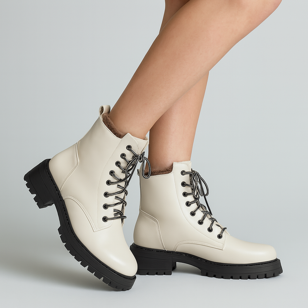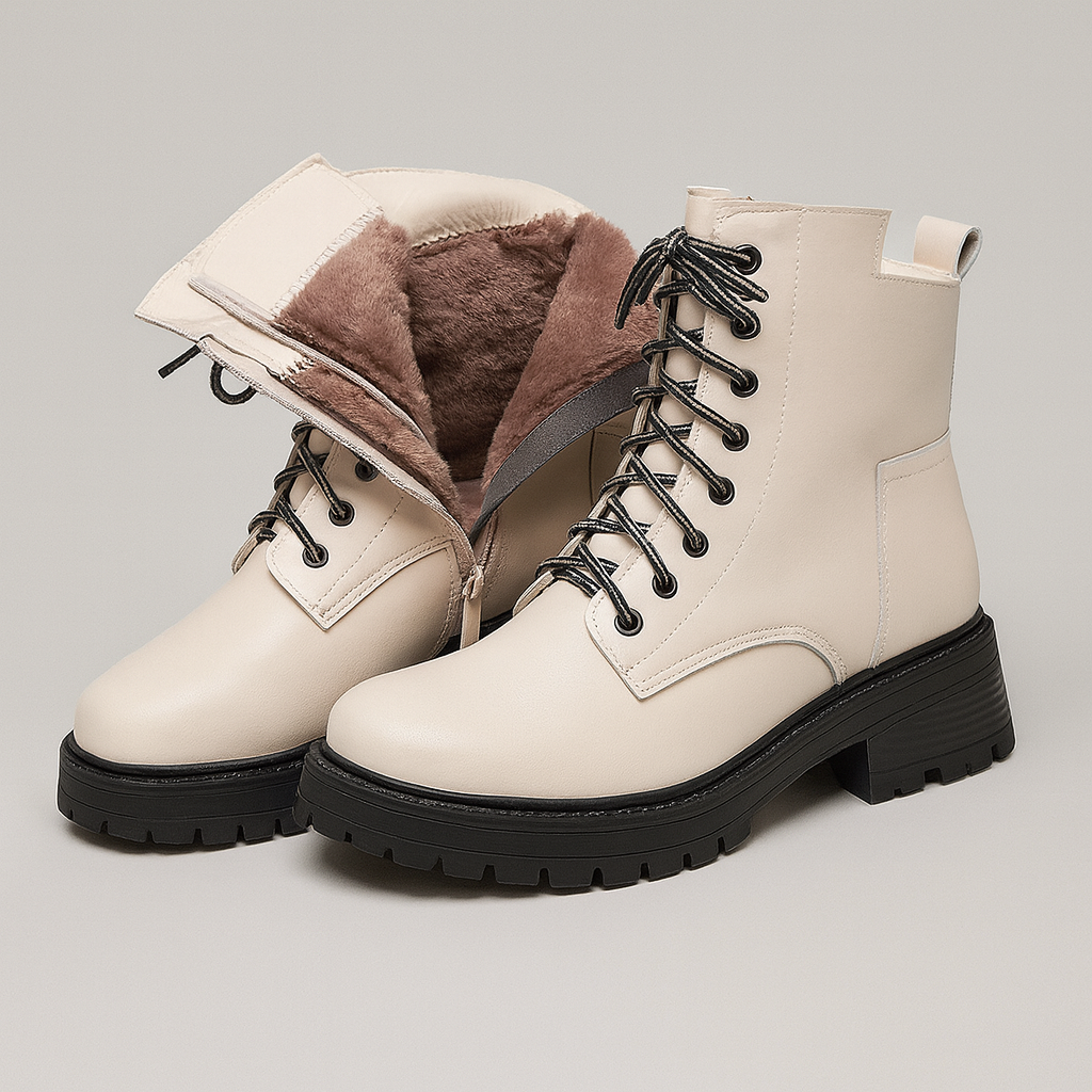 Liva Forede Snørestøvler Dame kombinerer moderne design med praktisk varme og holdbarhed. De er foret med blød, isolerende pels, som holder fødderne behageligt varme på kolde vinterdage. Med deres robuste sål og klassiske snørelukning giver de både godt fodfæste og en elegant silhuet, der passer perfekt til både jeans og kjoler.