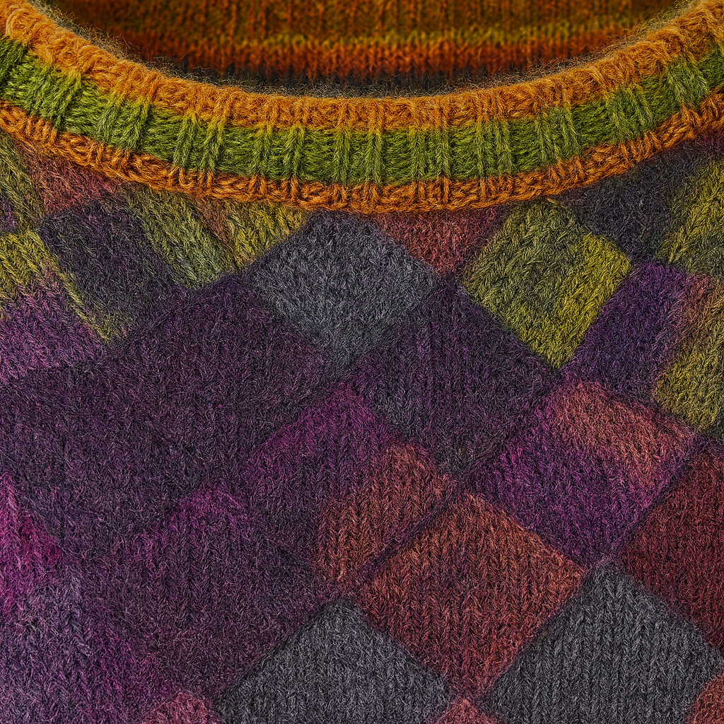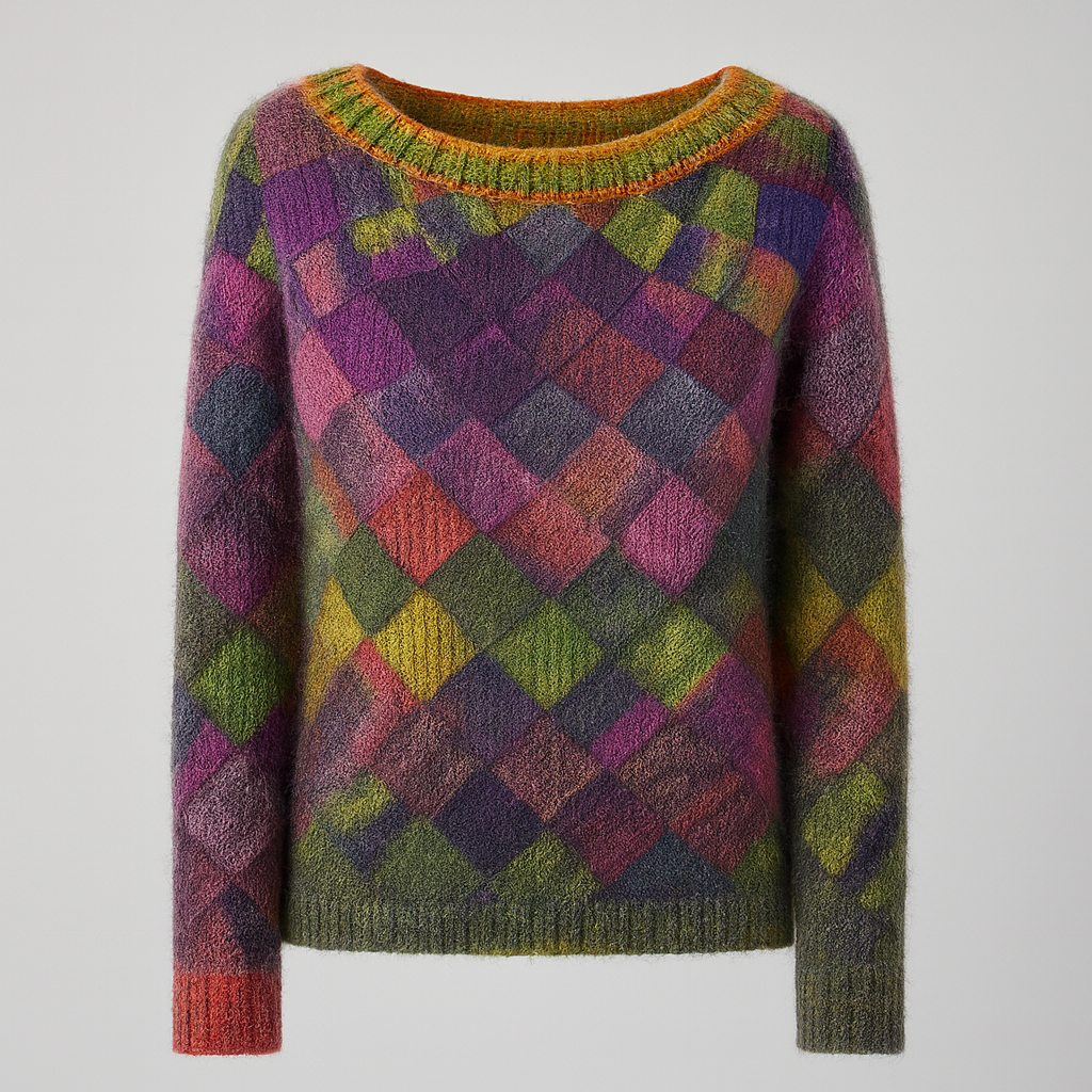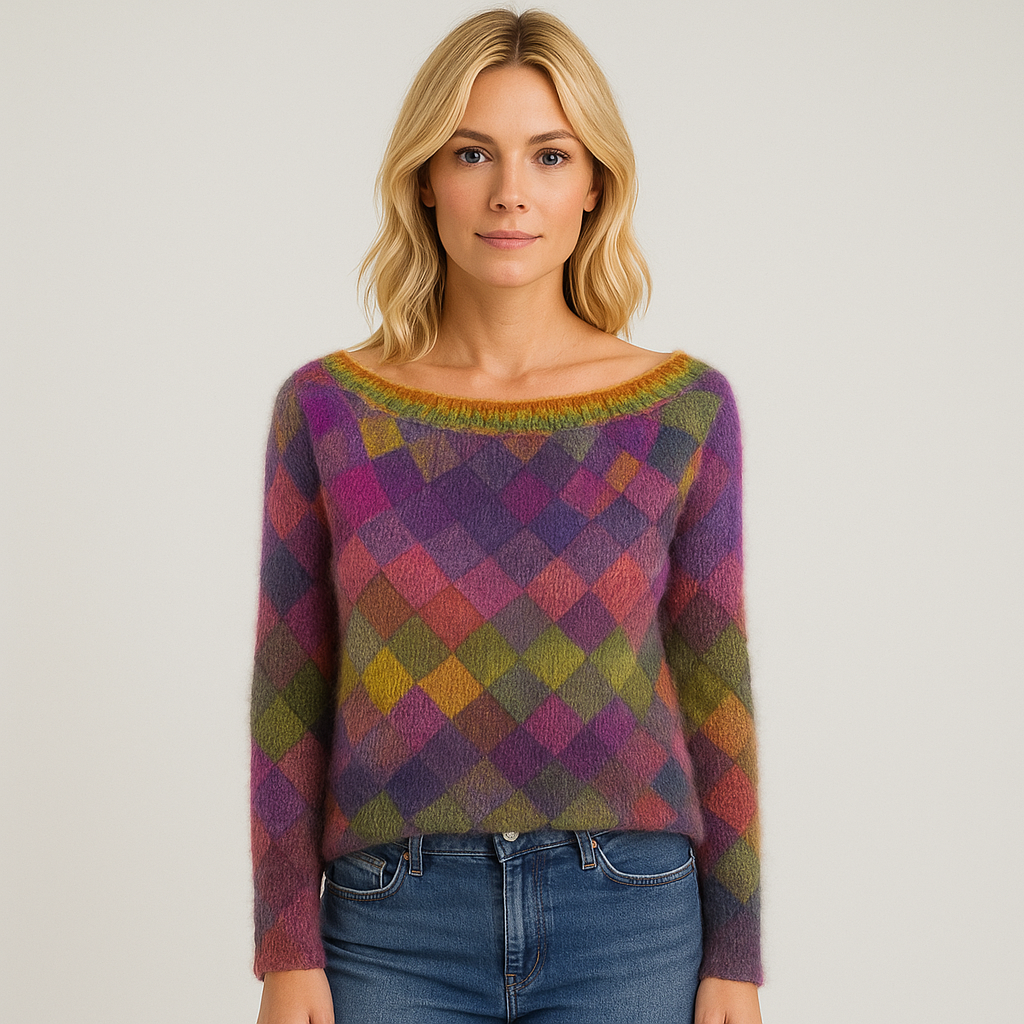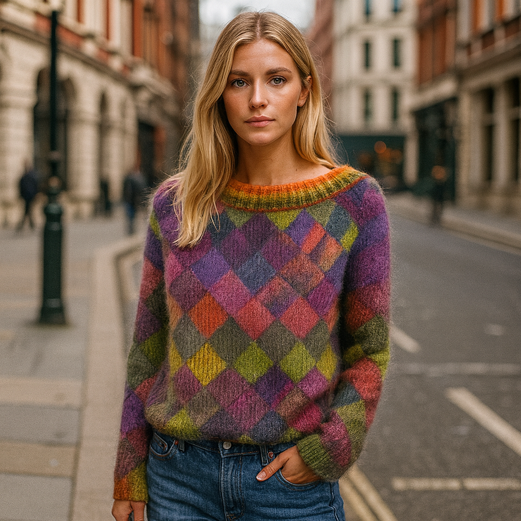 Maria Farverig Vintertrøje bringer liv og glæde til de kolde måneder med sit unikke diamantmønster i mange farver. Den har en løs pasform og en blød tekstur, som gør den både moderne og behagelig at bære. En perfekt kombination af varme og personlig stil, ideel til både hverdagsbrug og hyggelige vinterdage.