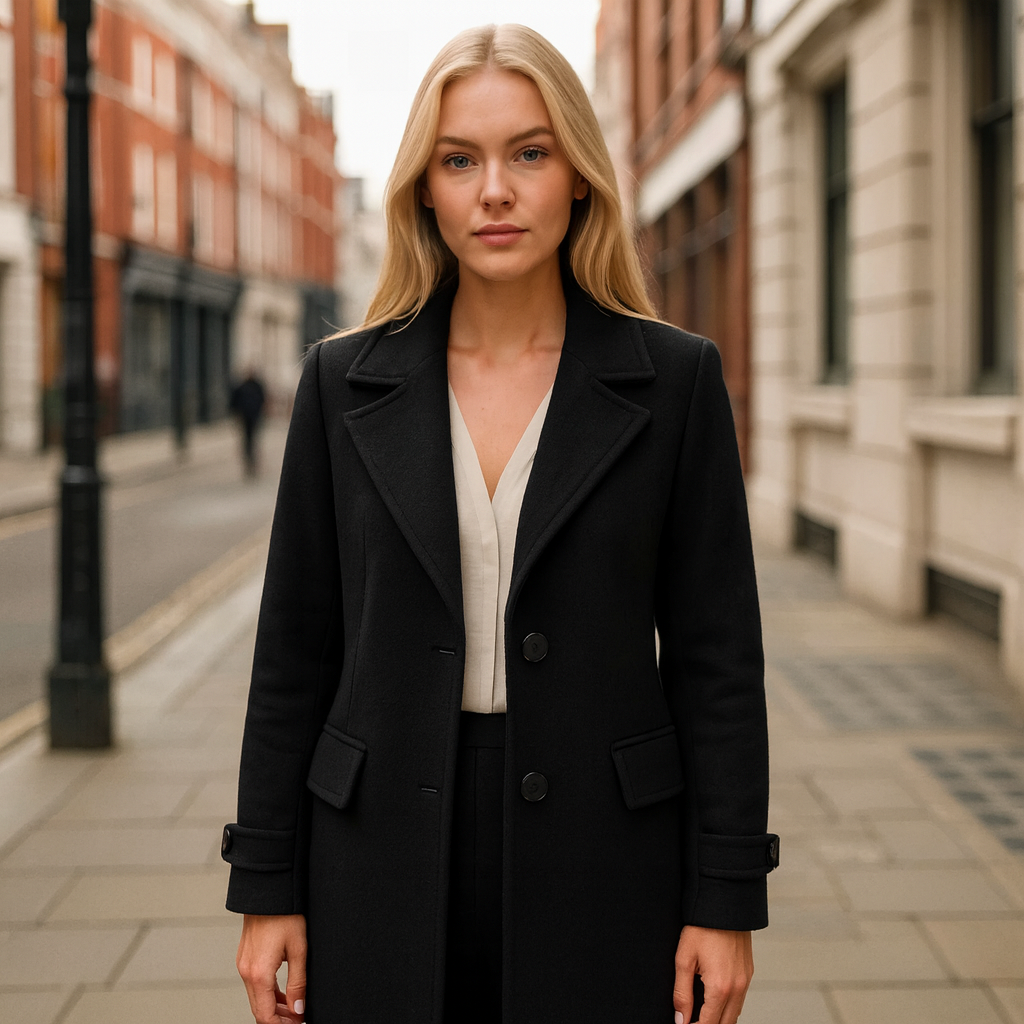 Mathilde Uldfrakke er indbegrebet af klassisk elegance og tidløs funktionalitet. Den har et raffineret skræddersyet snit med diskrete detaljer, der skaber et sofistikeret udtryk. Den glatte foring gør den behagelig at have på, mens uldblandingen sikrer varme på kølige dage.