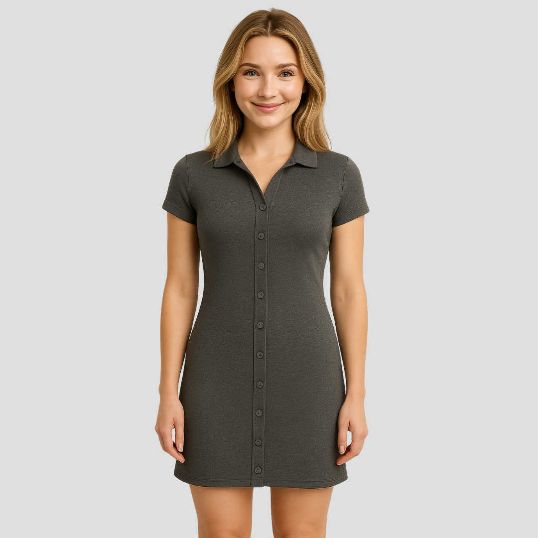 Hold din stil enkel og elegant med Mia Ribbet Mini Kjole. Denne tætsiddende kjole i blødt ribbet materiale giver et feminint, men afslappet udtryk, perfekt til både hverdag og aften. Den korte længde og knaplukningen foran tilføjer et moderne touch, mens det stretchy stof sikrer komfort hele dagen. Kombinér den med støvler for et cool look eller sneakers for en mere afslappet vibe.