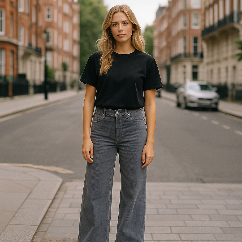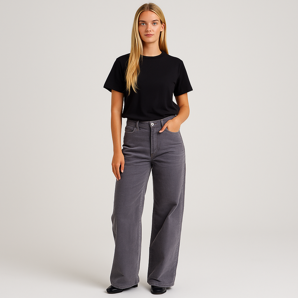 - Design: Klassiske bukser med bredt ben