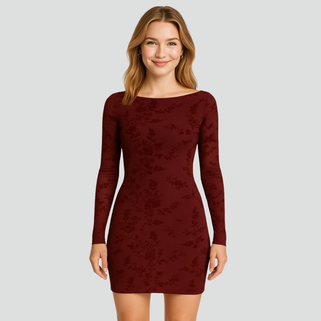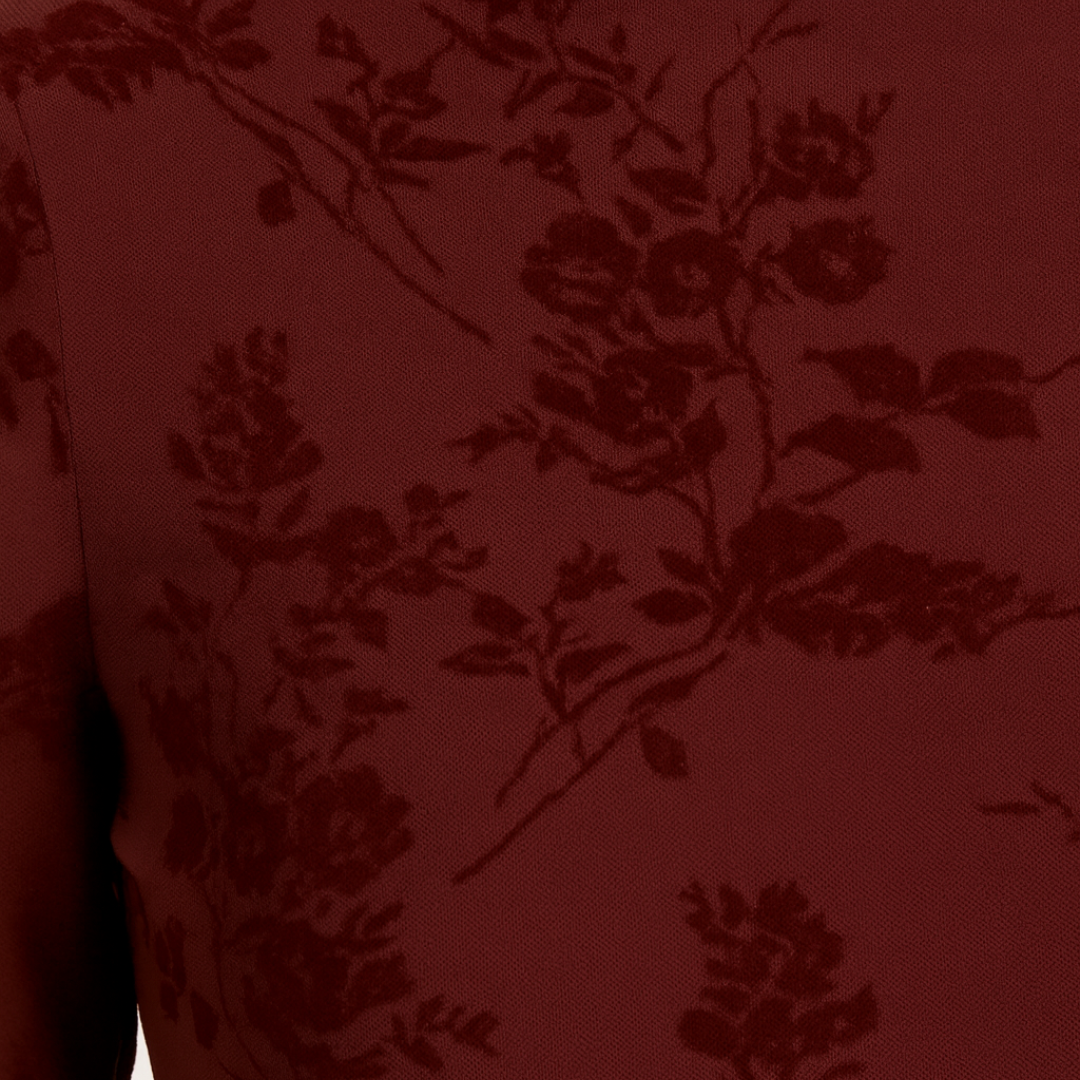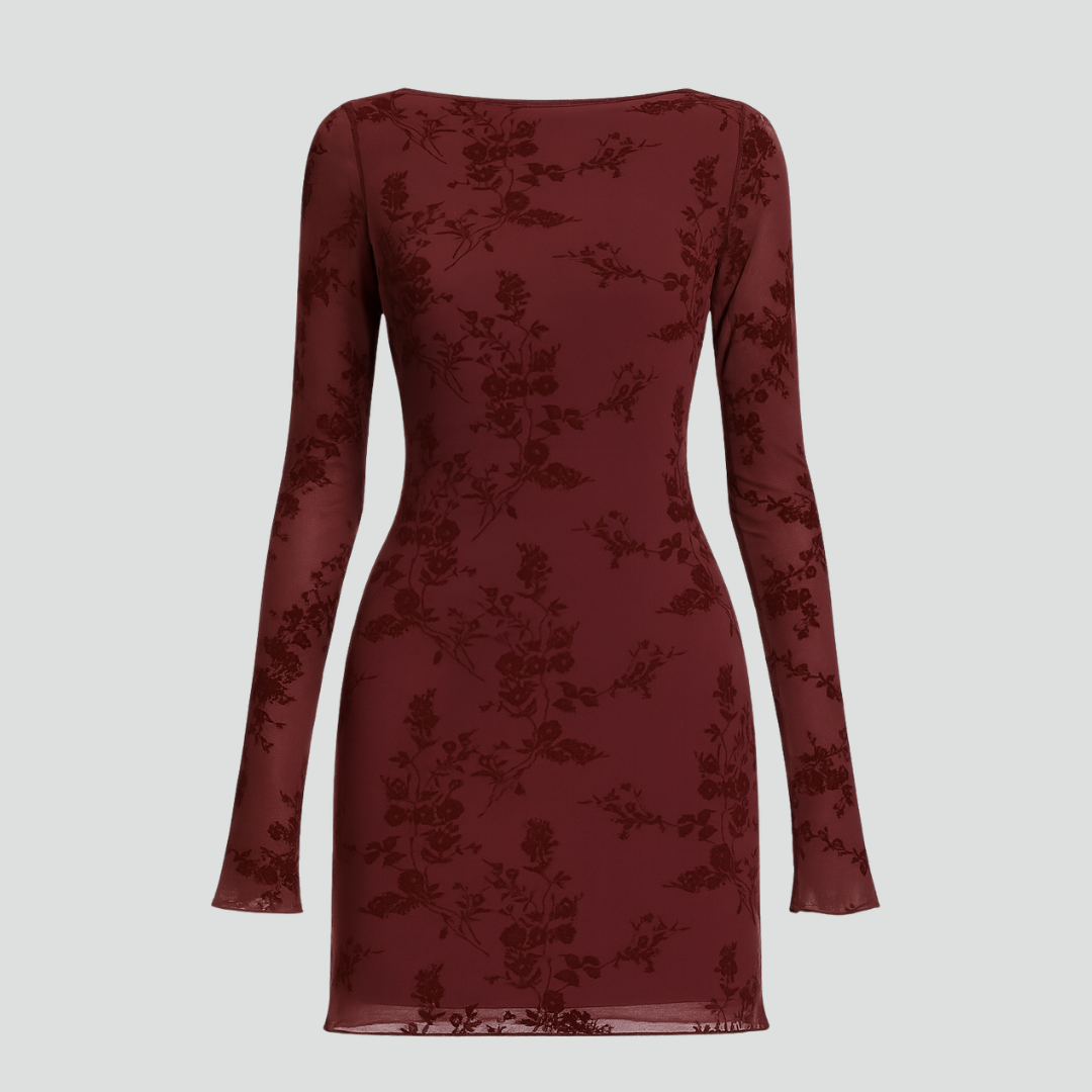 Sevila Mesh Kjole forener romantisk charme med moderne enkelhed. Den dybvinrøde kjole er fremstillet i let mesh med delikate blomsterdetaljer, der tilføjer tekstur og dybde. Den tætsiddende pasform og lange ærmer fremhæver silhuetten på elegant vis, mens det semi-transparente materiale giver et sofistikeret, sensuelt udtryk. En perfekt kjole til både aftener ude og særlige lejligheder.