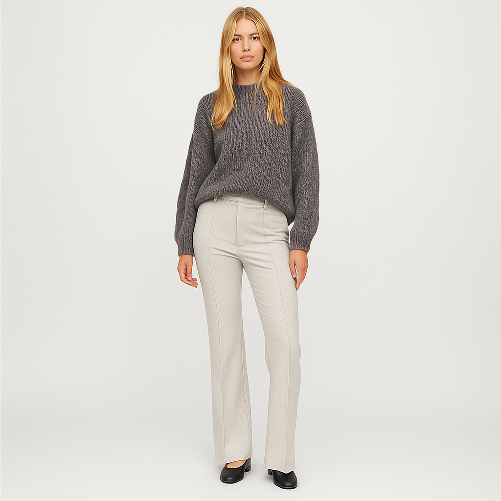 Siiri Smart Casual Flare bukser kombinerer et elegant look med afslappet komfort. De er designet med let udvidede ben, der giver en flatterende silhuet og en tidløs stil. Perfekte til både arbejde og fritid, hvor du ønsker et sofistikeret og ubesværet udtryk.